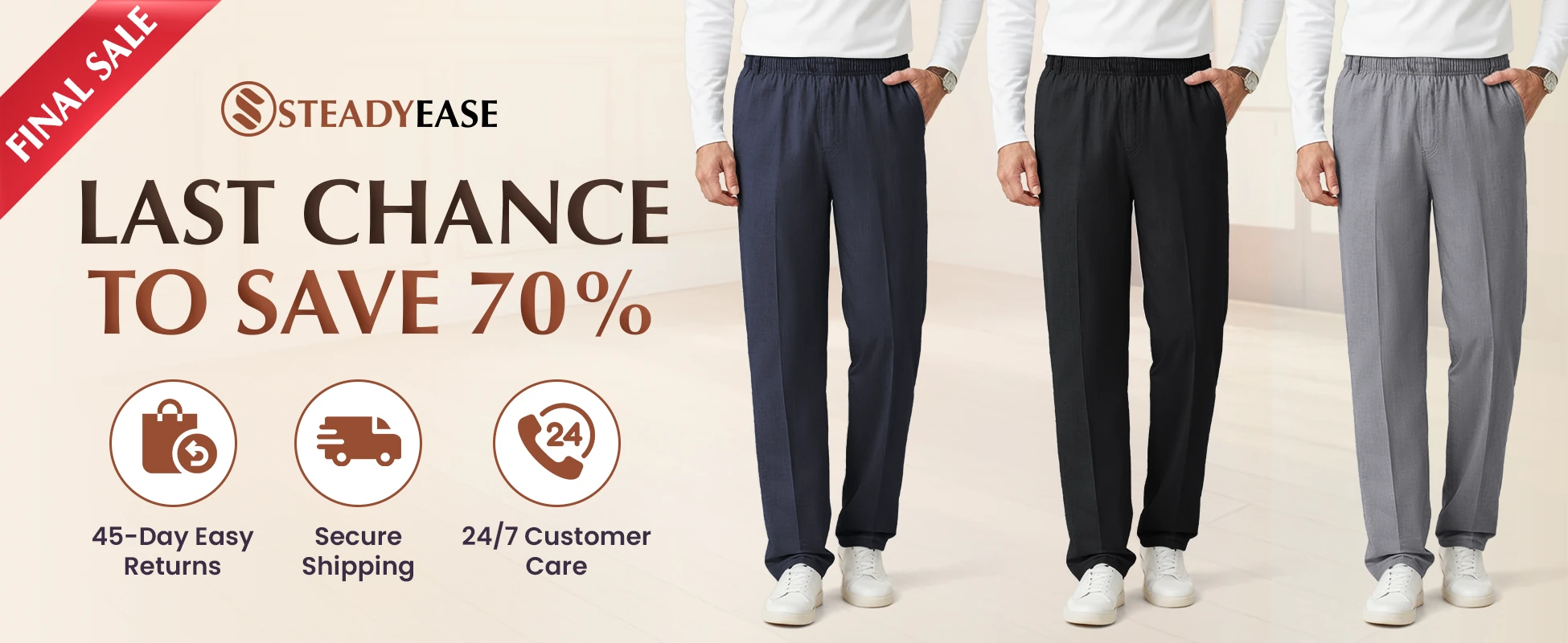 SteadyEase - LAST DAY 70% OFF - Men’s Pure Cotton Classic Comfort Pants